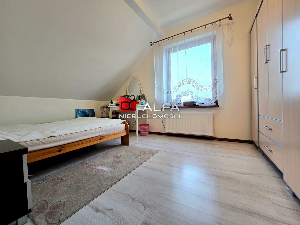 Przestronny dom na dużej działce - Pszenno!Dom wolnostojący składający się z dwóch poziomów. Na parterze znajduje się cześć dzienna, gdzie jest salon wypoczynkowy, częściowo otwarta kuchnia z jadalnią oraz łazienka, hol, spiżarka i wiatrołap. Na tym poziomie znajduje się również garaż na jedno auto i kotłownia. Na poddaszu jest strefa prywatna, gdzie są cztery sypialnie, garderoba, łazienka i hol. Z salonu jest wyjścia na narożny taras o powierzchni ponad 40 m2 i do ogrodu.